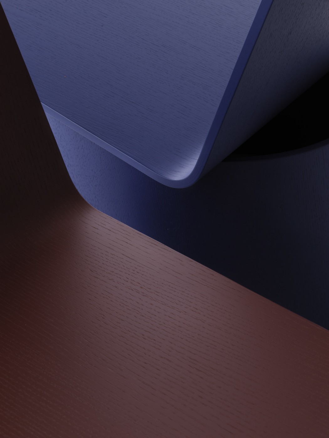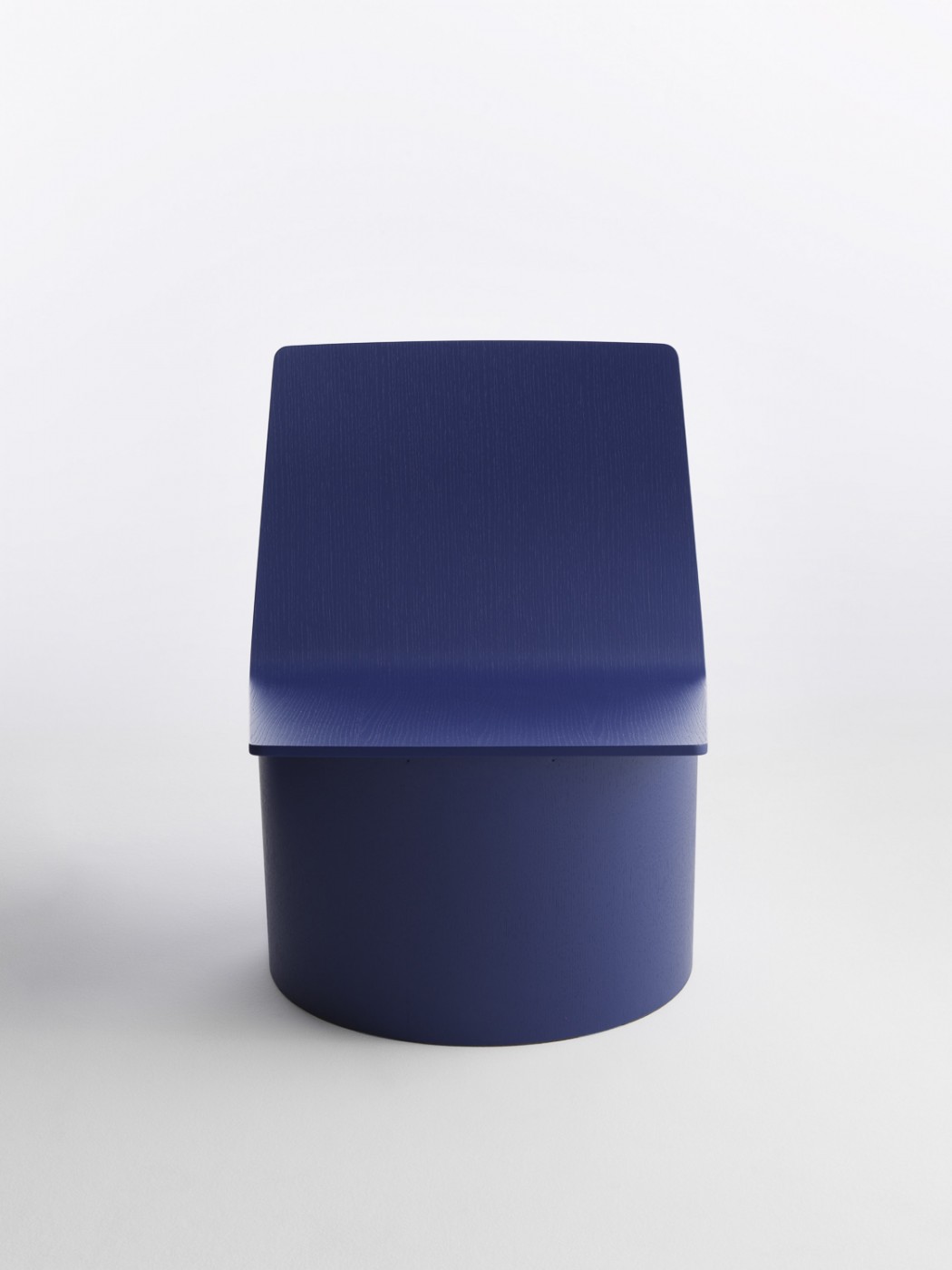 The Bias lounge chair was developed to complement the eponymous side-table duo presented a few years earlier. The entire Bias collection is based on a few geometric elements, with the key feature being the inclined cylindrical base. For the lounge chair, the originally flat wooden top of the side tables has been reshaped into a three-dimensional, curved seat shell. The resulting form evokes the image of a fluttering sheet of paper resting gracefully on a sloping cylinder. A substantial amount of wood is used in the Bias collection, which can cater to a wide variety of contemporary needs. Bursting with personality, it is more than capable of standing alone in living spaces or fitting into the diverse spheres of the contract market.