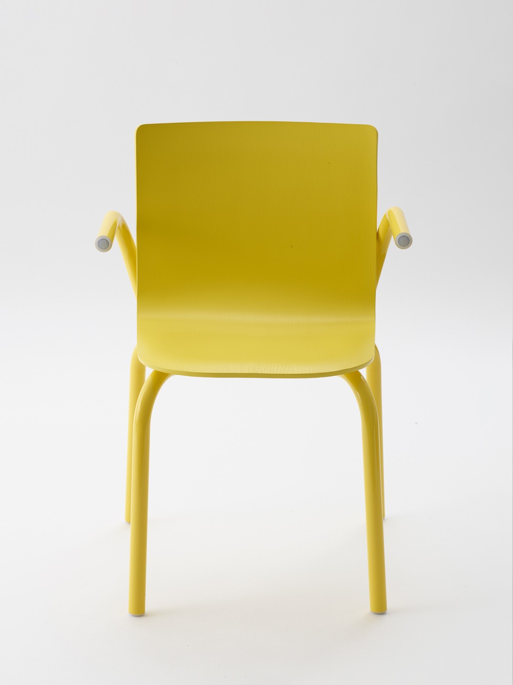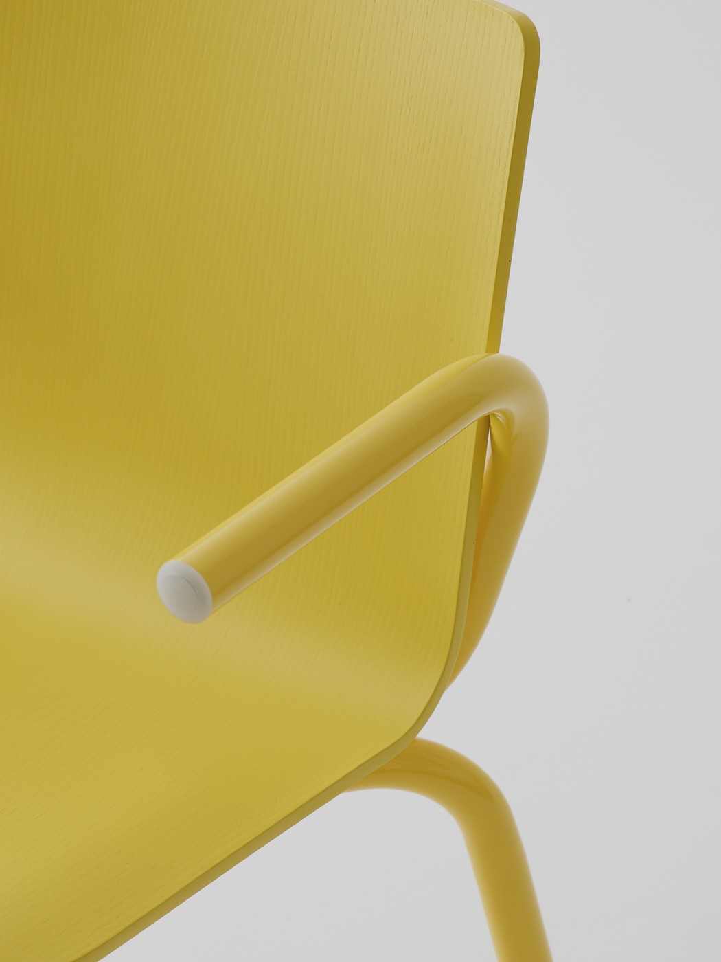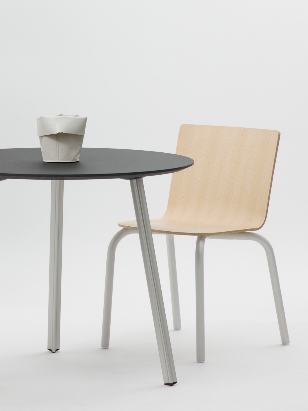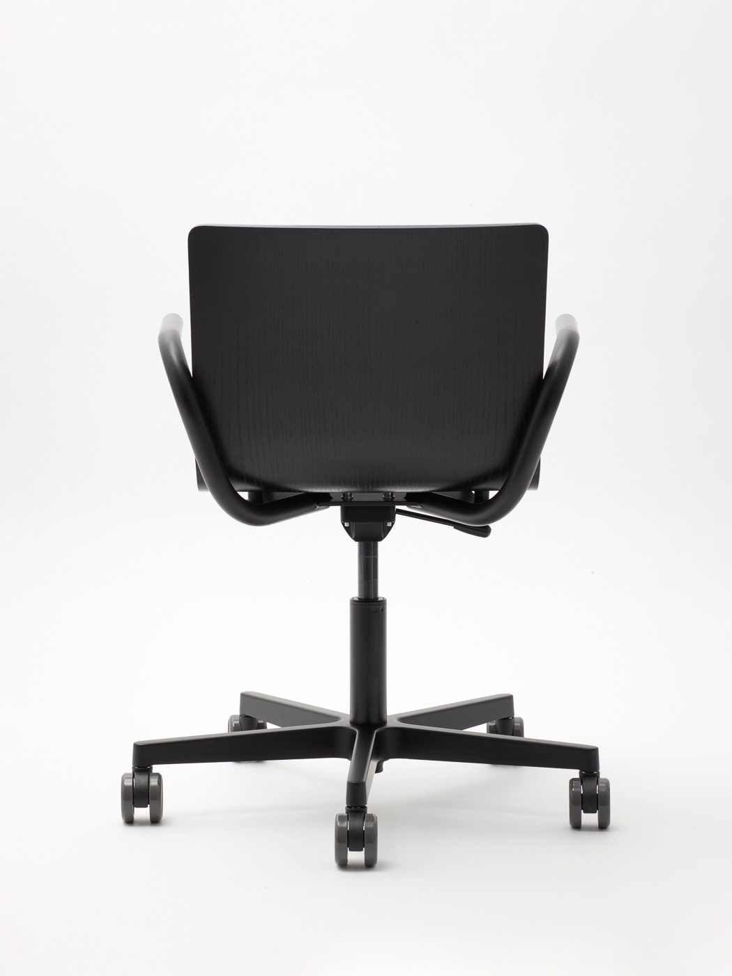 The Glyph chair system by Geckeler Michels features a moulded wooden shell that explores the 3D-shaping limits of common wood veneers. The seat’s soft, circumferential edge allows for a generous 180° range of motion, while the reduced material thickness in the back provides a pleasant spring effect. Glyph combines ergonomic seating with a minimalistic form, offering a wide range of configurations. The ash veneer shell is available in different colours and can be paired with various base frames.
