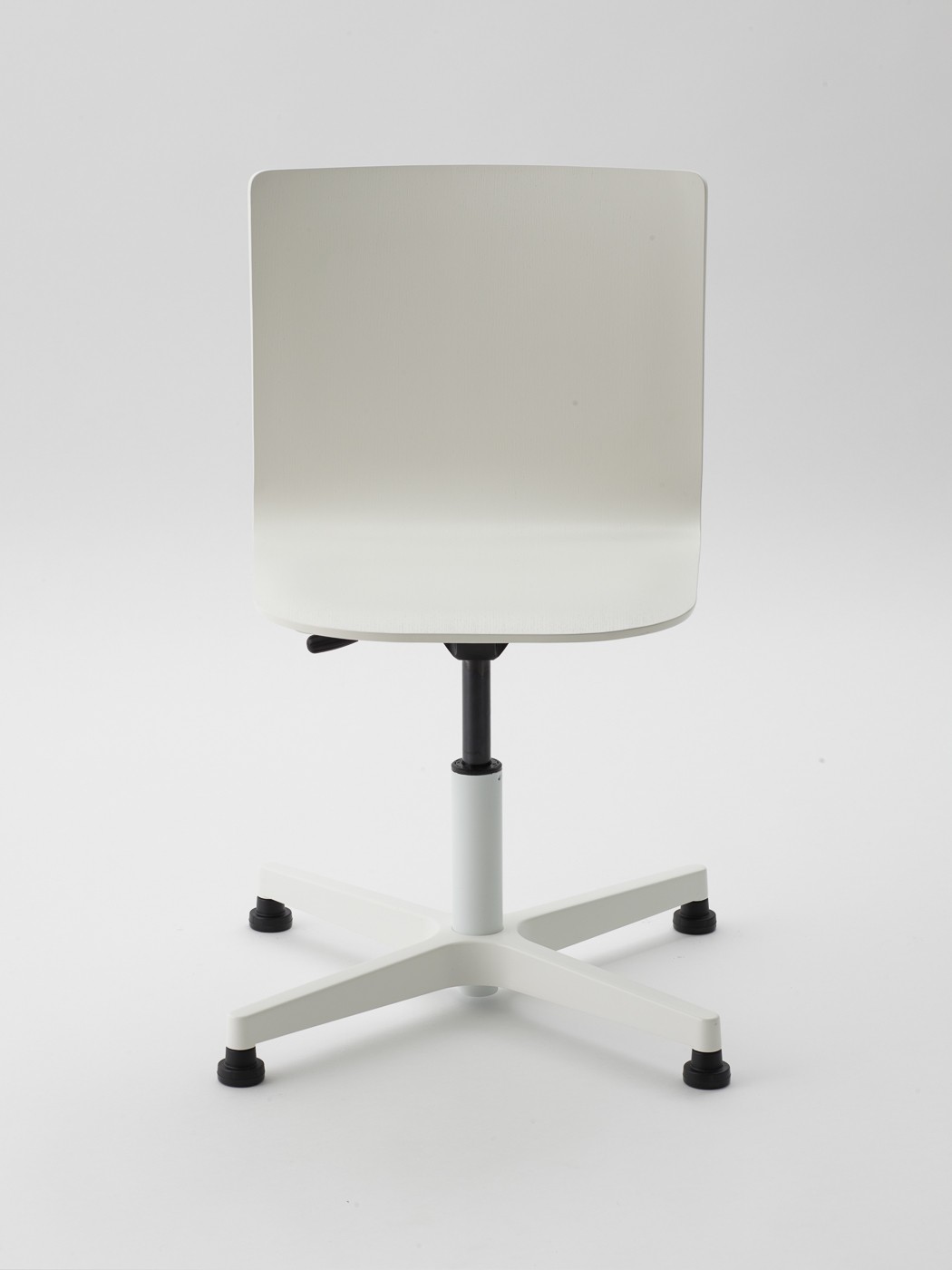 Moulded plywood shell, aluminium pipe frame and swivel base