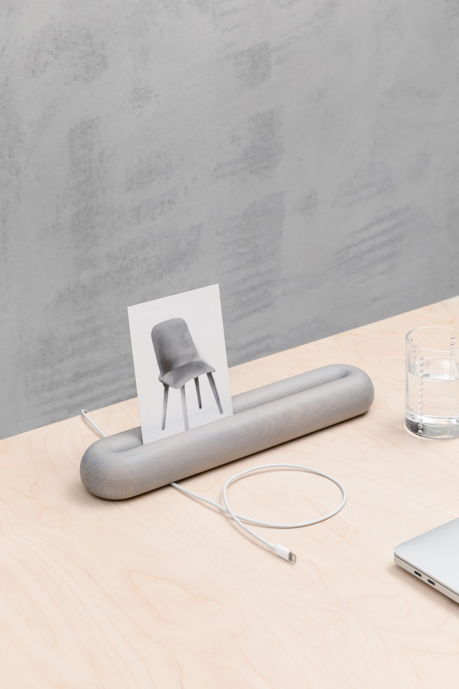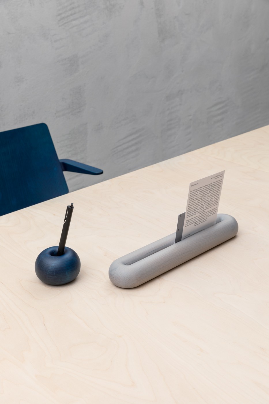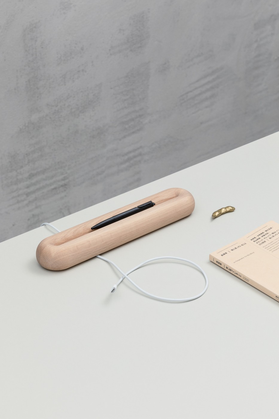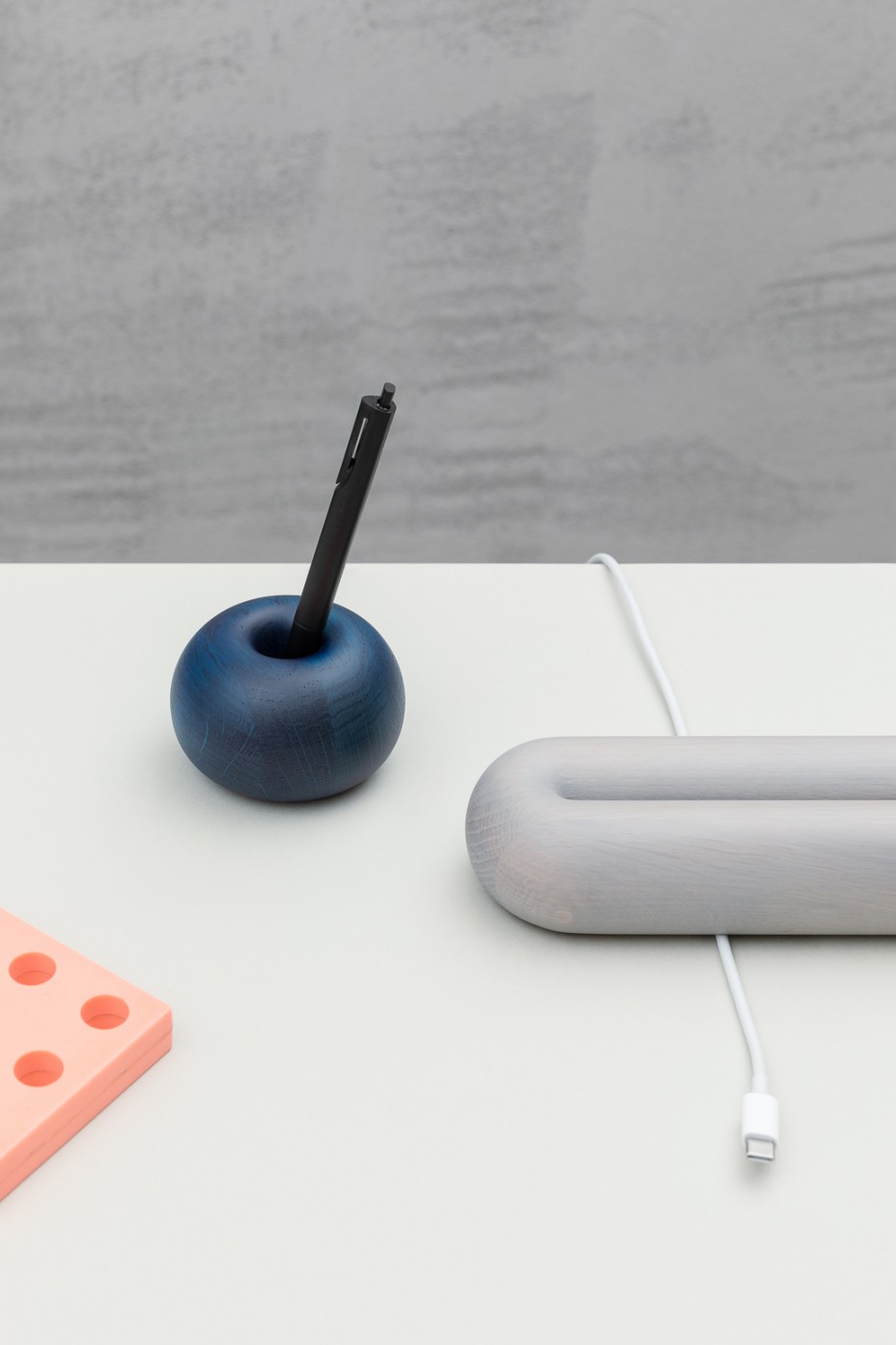 Nashi is an East Asian pear known for its distinctive balloon-like shape. The eponymous desk organisation items created for Karimoku New Standard playfully reference this unique silhouette. The Nashi pieces serve as pen rests and card and cable holders, offering visual comfort and haptic softness to the user. Designed to be a desirable companion for office workers – especially in the times of social seclusion during the pandemic – the bottom sides feature milled grooves to accommodate electronic cables.