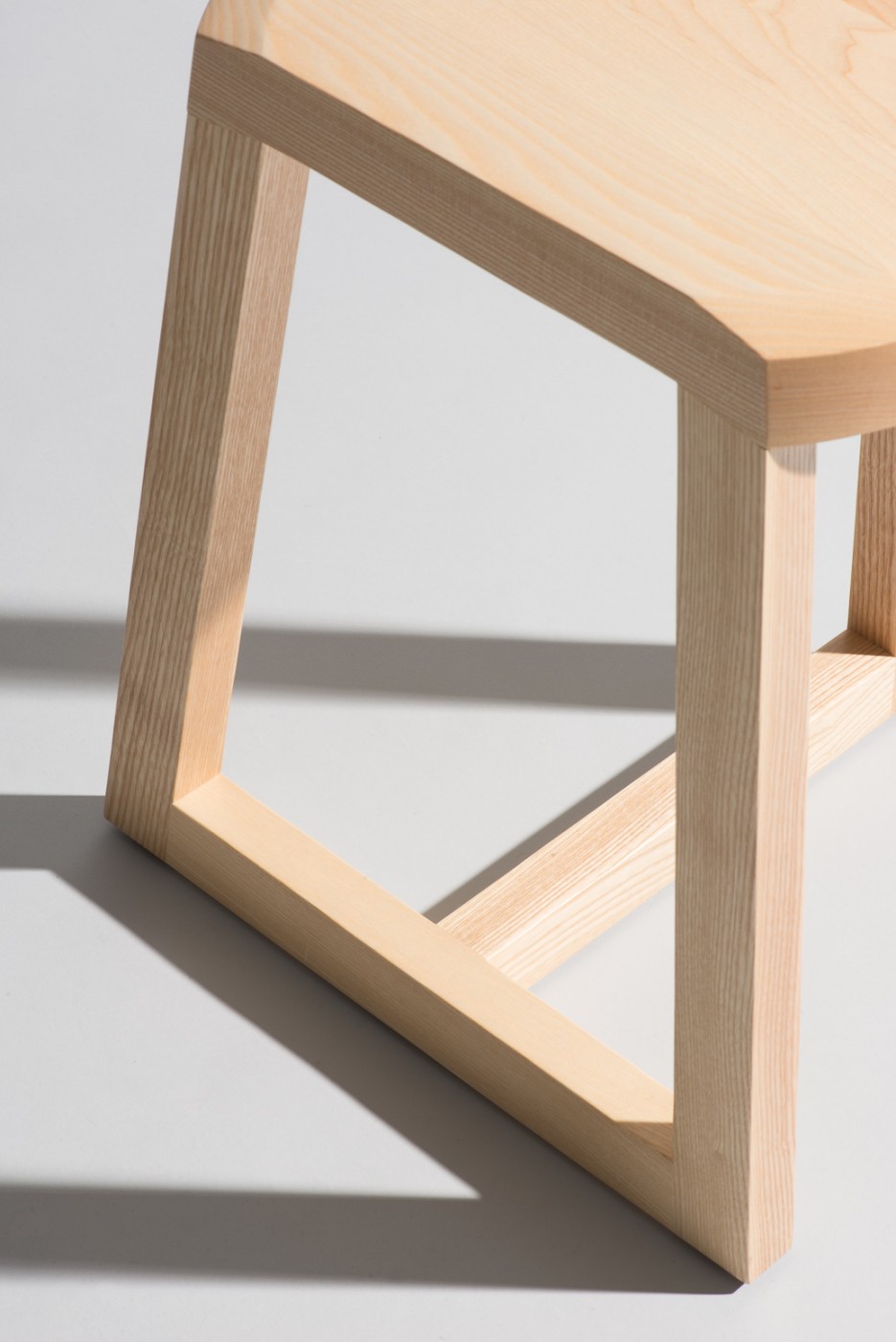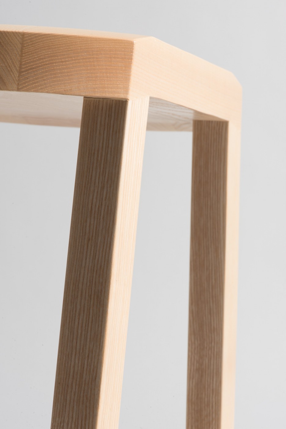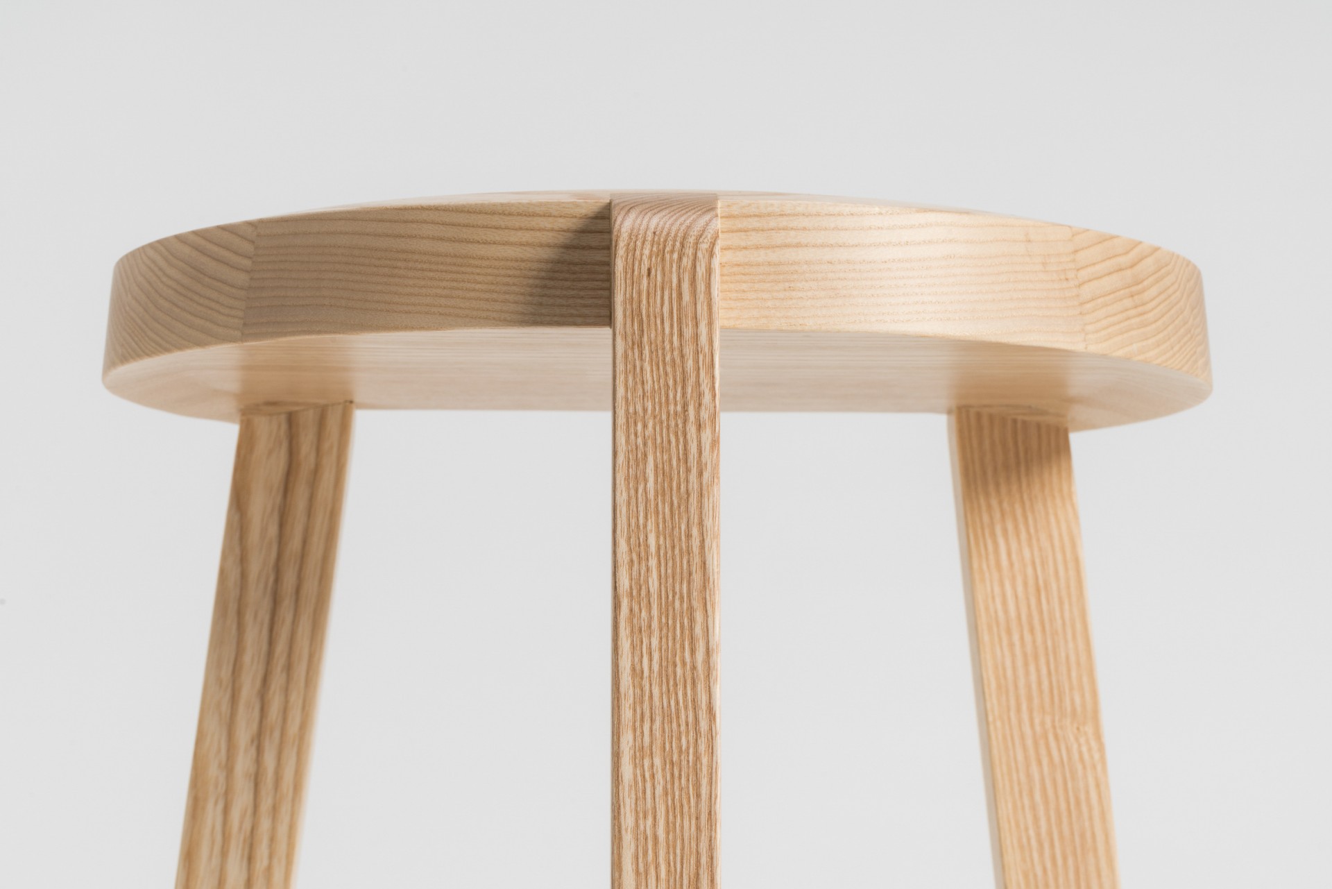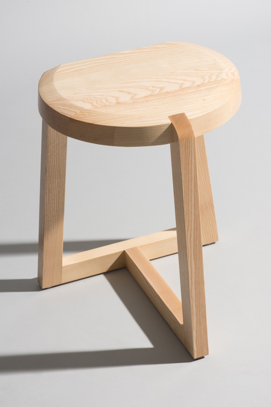 Oyster is a versatile stool and occasional side table crafted from solid ash wood. Its tripod design possesses a graphic quality that is enriched with elaborate woodworking details. The stool’s unique form is defined by its cut-off circular seat and a distinctive T-shaped leg construction, giving it a clear direction and making it ideal for everyday use. Oyster is produced in Portugal, combining computer-aided manufacturing with traditional wood joinery techniques.