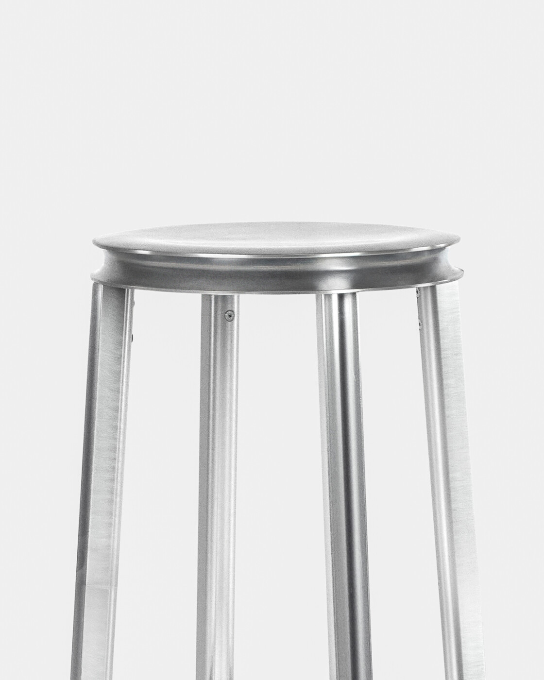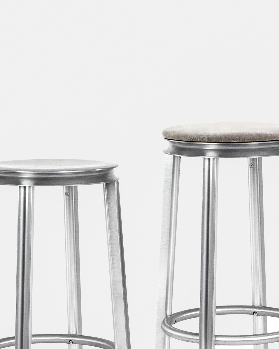 Crafted with precision and attention to detail, Runout embodies modern elegance and practical functionality in the form of a well-known barstool silhouette. Its outlines resemble those of a familiar, sturdy tool, yet the delicately hollowed-out frame elements impart a light and elegant appearance. The round seat adds to its contemporary appeal, while the options for upholstered and swivel seats cater to diverse preferences. Crafted from durable aluminium, its lightweight frame ensures stability and access from every side. Designed in three common heights of 45, 65, and 75 cm, it ensures versatility for various settings, from kitchen islands to cafés and commercial spaces.