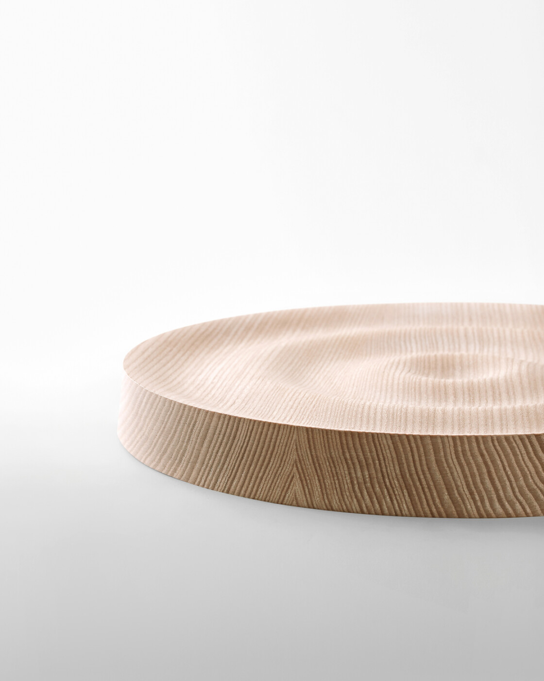 Crafted from solid ash, Wave is a storage tray inspired by the graceful motion of concentric waves. It offers a soothing and organised space for your belongings. Whether used as a vide-poche in the entry hall, a centrepiece on the dining table, or a jewellery tray in the dressing room, Wave provides a playful way to arrange and display your items across its various undulating surfaces. The soft curves of the tray offer a tactile experience, enhanced by a carefully applied oil finish. Available in natural ash and additional colours.